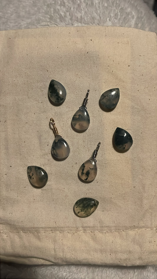 Moss Agate Droplet Pendant