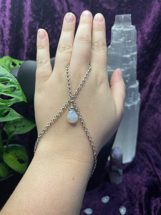 Moonstone Droplet & Stirling Silver Hand Chain
